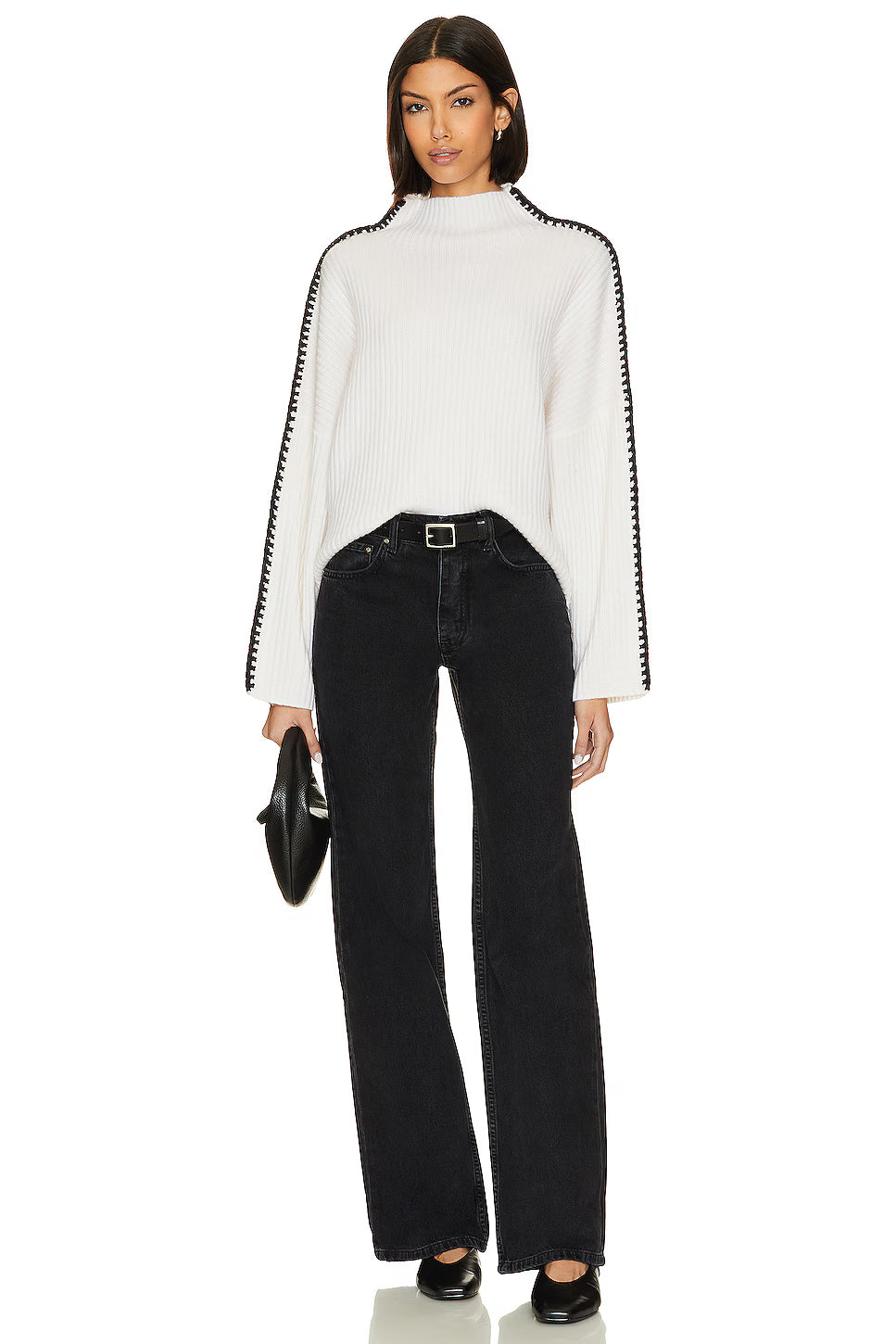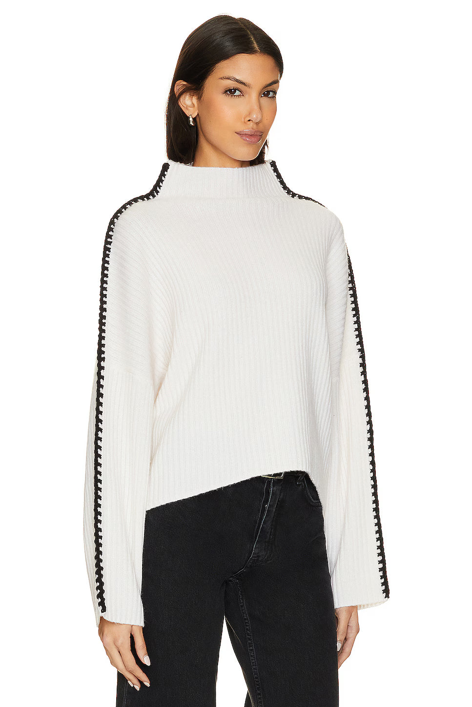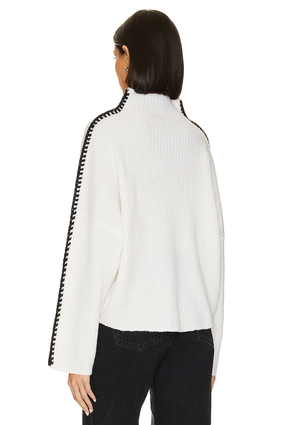 The Marullo Mockneck is your go-to for effortless cool. This cropped-oversized essential features a luxe wool-cashmere blend with signature contrast stitching from neck to cuff.