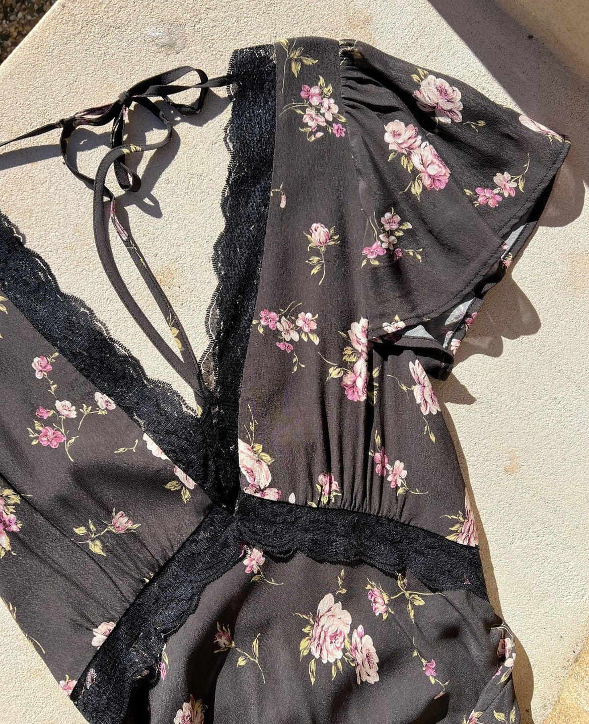 - V-neckline with lace trim and delicate cut-out detail