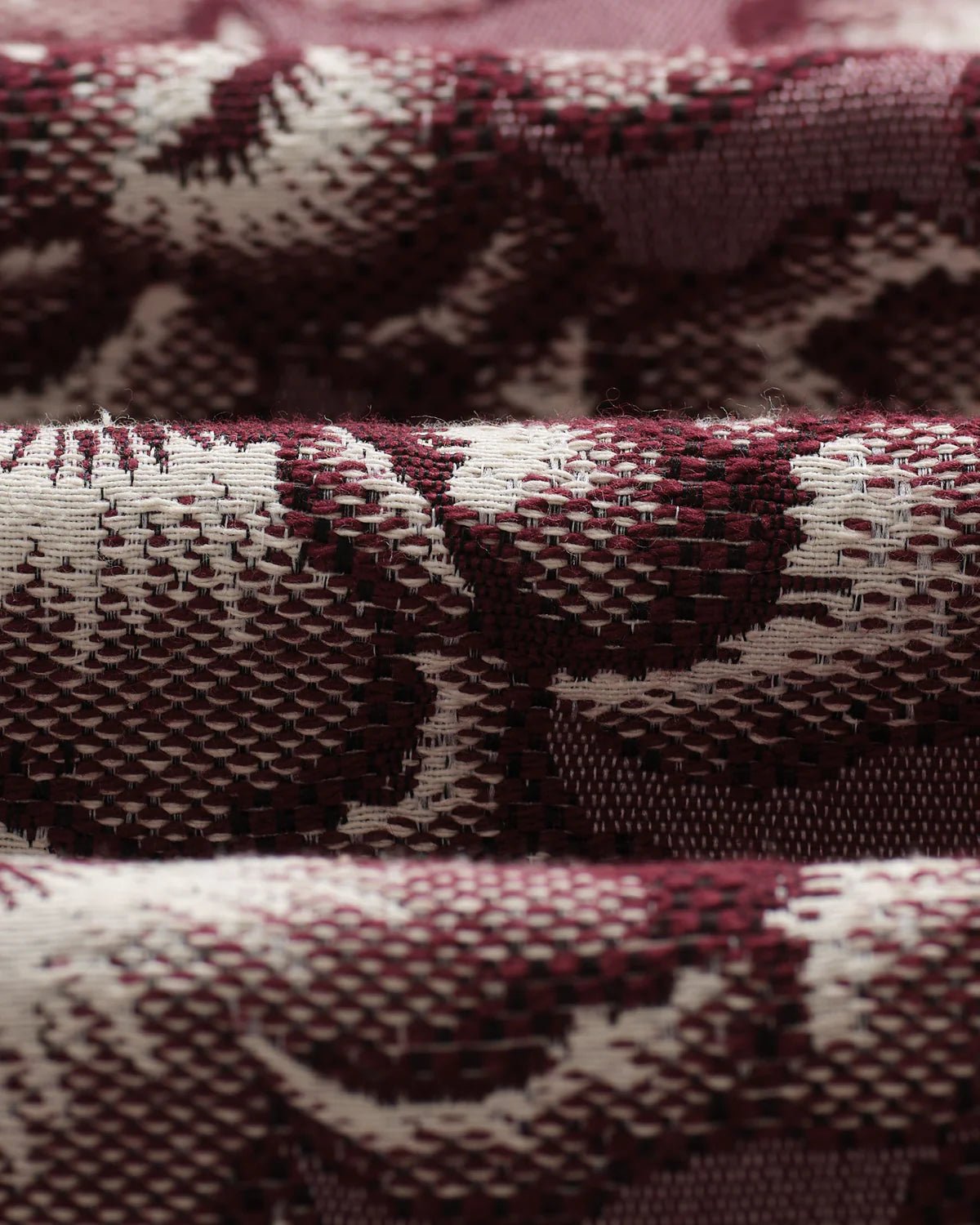 The Park jacket is back in a bold new design. Cut for a relaxed, boxy fit, this zip jacket is constructed from a french cotton jacquard cloth to create this bold burgundy and ecru floral design. It features two side entry pockets and a two way metal zip fastening.